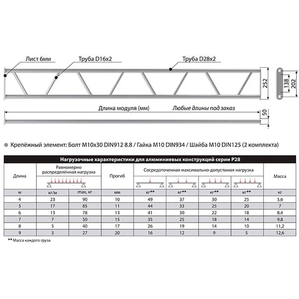 Крепежный элемент: Болт M10x30 DIN912 8.8 / Гайка М10 DIN934 / Шайба M10 DIN125.2 комплекта (в комплект не входят).