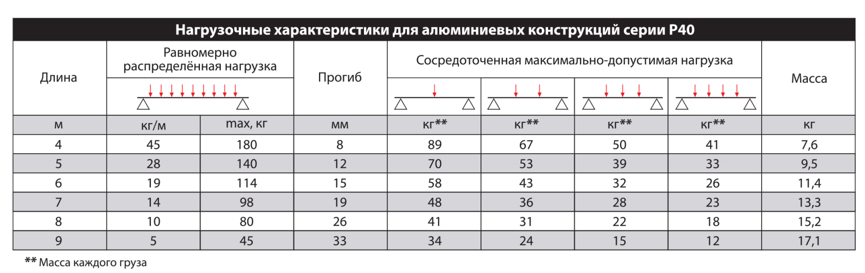 | Код | Длина, мм | Масса, кг |