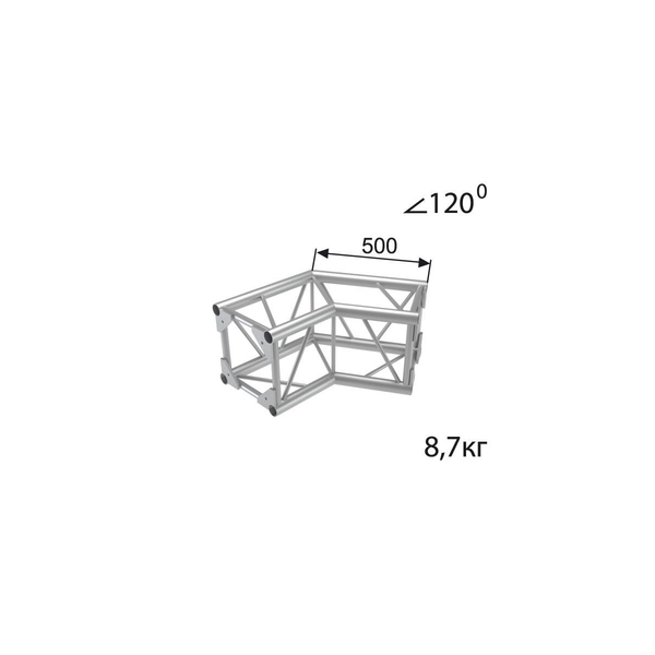 Стыковочный угол 120 градусов, 350x350 мм, d50x3 \ d16x2 мм. Крепежный размер 230х230 мм, М10.