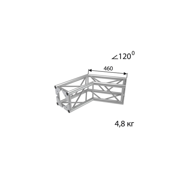 Стыковочный угол 120 градусов, 290x290мм, d40x2 \ d16x2мм. Крепежный размер 180х180мм, М10.
