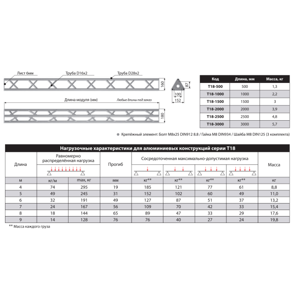Крепежный элемент: Болт M8x25 DIN912 8.8 / Гайка М8 DIN934 / Шайба M8 DIN125.3 комплекта (в поставку не входят).