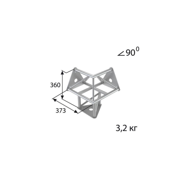 Стыковочный узел для 3-х ферм под 90 градусов, d28х2 \ d16х2мм. Крепежный размер 155мм, М10.