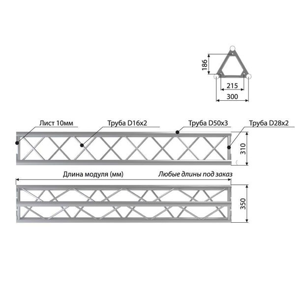 Сплав АД35Т1 (6082Т6). Крепежный элемент: Болт M10x35 DIN912 8.8 / Гайка М10 DIN934 / Шайба M10 DIN125, 3 комплекта (в поставку не входят).