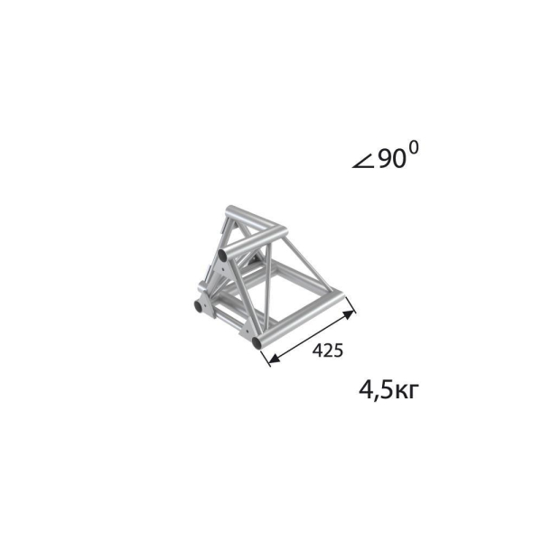 Стыковочный угол 90 градусов, d50х3 \ d16х2мм. Крепежный размер 215мм, М10.