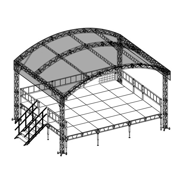 Сценический комплекс с замкнутым коньком с размером подиума 12 х 7,2 м, с ручной талью