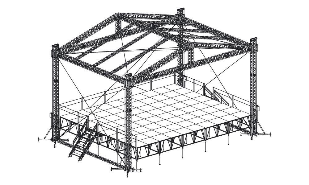 Сценический комплекс с замкнутым коньком с размером подиума 12 х 9,6 м, с электрической лебедкой