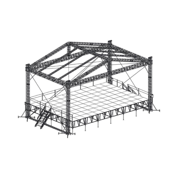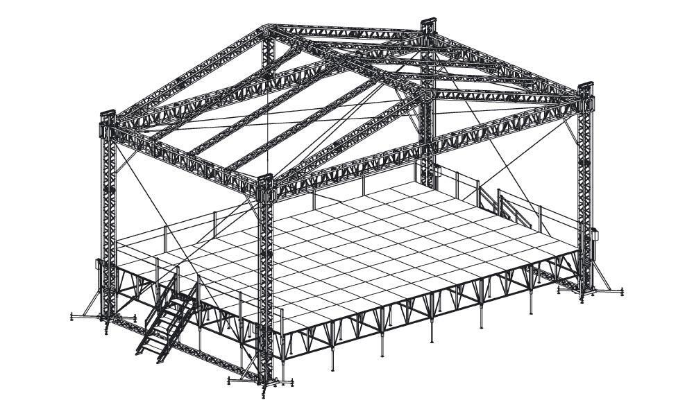 Сценический комплекс с замкнутым коньком с размером подиума 14,4 х 9,6 м, с ручной талью