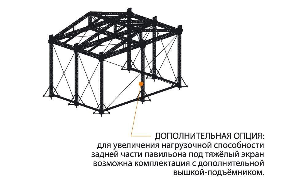 * При условии установки всех растяжек, соответствующей загрузке оснований и расчаливании павильона.