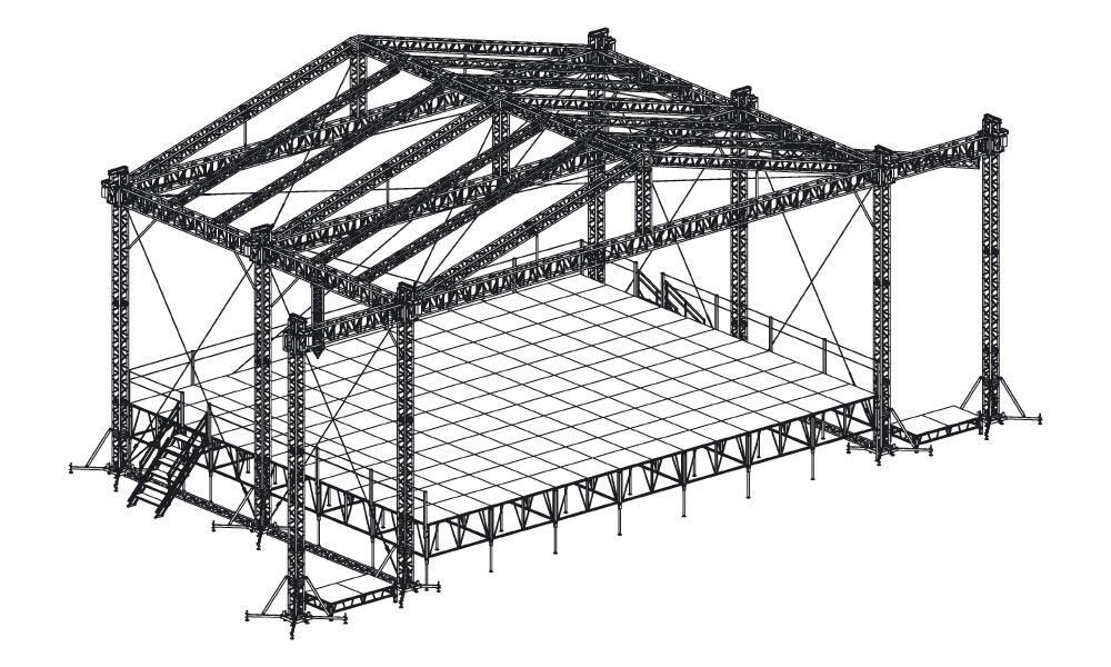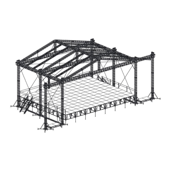 Сценический комплекс с замкнутым коньком с размером подиума 16,8 х 13,2 м, с ручной талью и звуковыми порталами