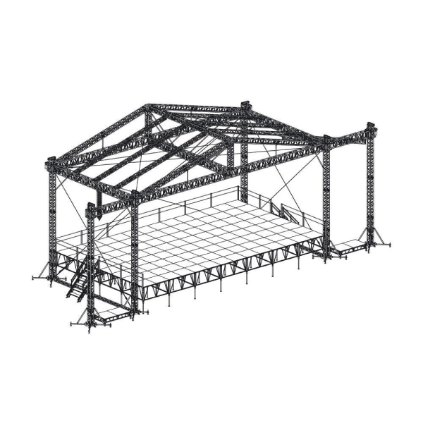 Сценический комплекс с замкнутым коньком с размером подиума 16,8 х 9,6 м, с ручной талью и звуковыми порталами