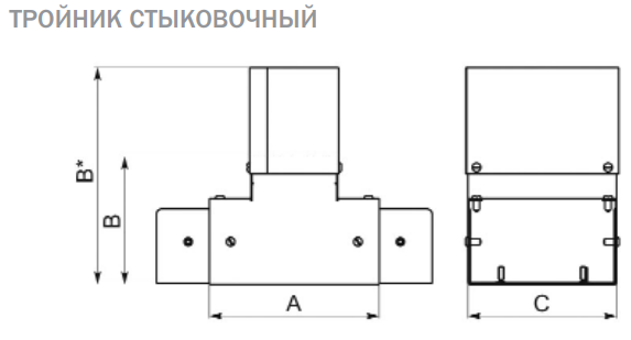 | Тройник короба стыковочный | ТС10.6 | 150 | 105 (190*) | 100 | 0,1 |