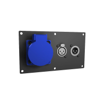 Панель лючка, окрашенная порошковой краской черного цвета с разъёмами