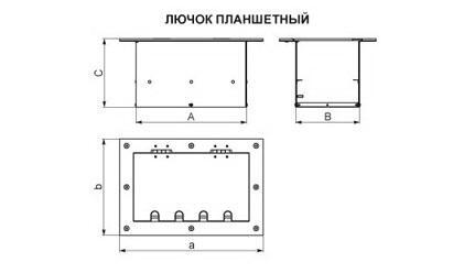 | Обозначение | Размеры коробки лючка АхВхС (С-общая высота лючка) |