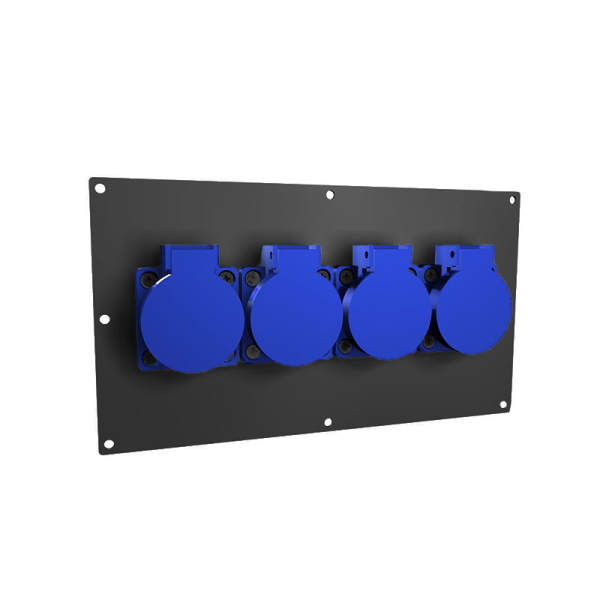 Панели выполнены из листовой стали и окрашены в черный цвет. Возможно изготовление панелей с различными разъёмами.