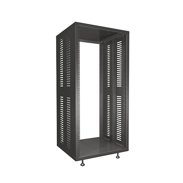 Рэковый шкаф состоит из основания с четырьмя регулируемыми ножками, верхней крышки и двух несущих боковых стенок. Перфорация для крепления оборудования расположена с передней и задней стороны стойки. Предусмотрены крепления для установки колесных опор (приобретается отдельно). Возможно изготовление рэковых шкафов с задней стенкой и дверкой с замком.