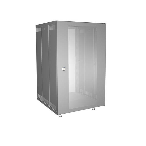 Шкаф рэковый напольный со стеклом, замком и задней стенкой для монтажа оборудования.