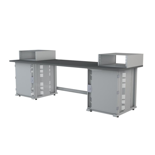 Стол оператора. Столешница 2500x800 мм, 2 рэк-тумбы 14U, 2 съемные рэк-стойки 4U.