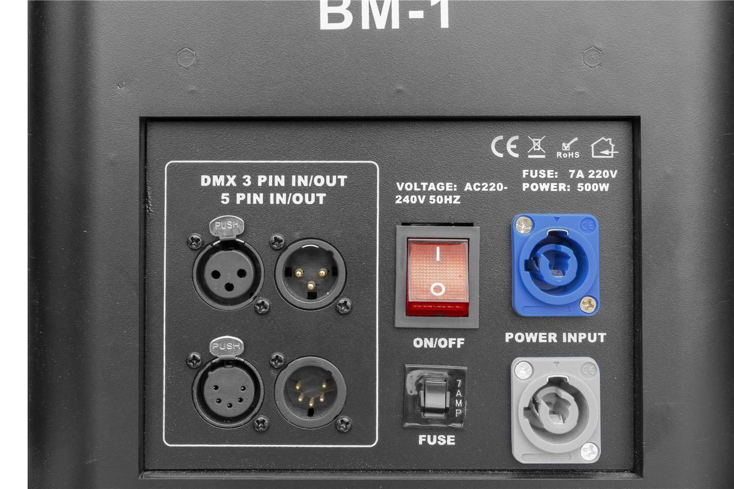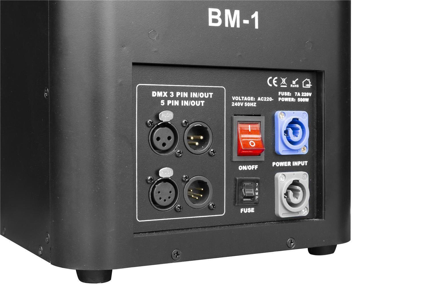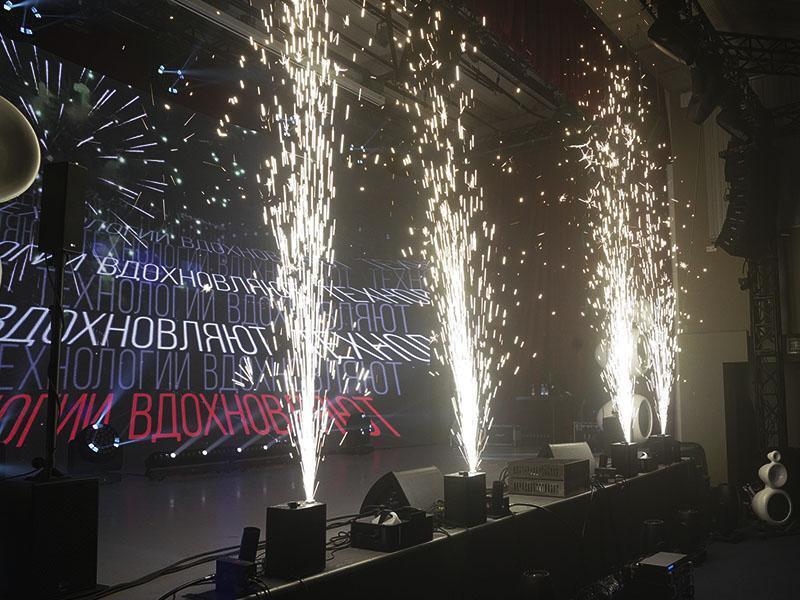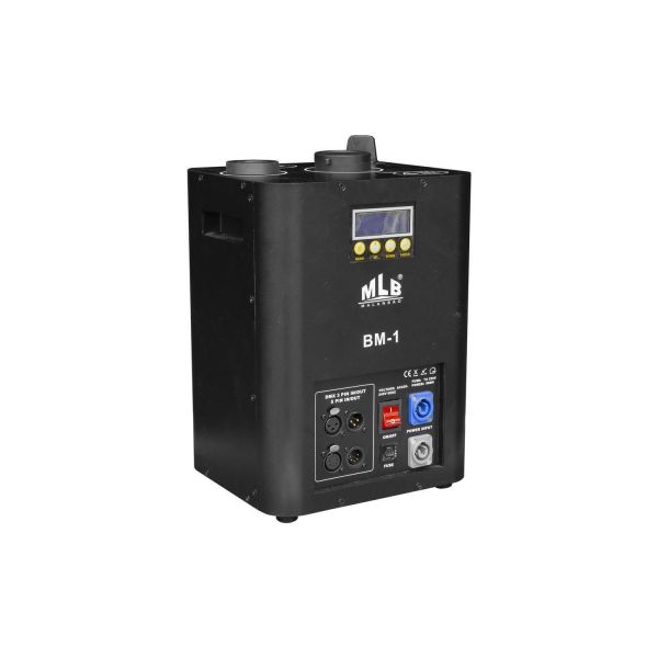 Новинка 2019 года от MLB – генератор холодных искр BM-1. Прибор форм-фактора колонного типа производит фонтан холодных искр высотой от 1,5 до 5 метров. Диапазон высот фонтана холодных искр зависит от типа используемого расходного материала – титановой крошки (Titanium Composition). Прибор оснащен LCD-дисплеем для быстрой и легкой настройки параметров, управление может осуществляться как c дистанционного радио ПДУ, так и по протоколу DMX. Для удобной коммутации группы приборов предусмотрены разъёмы сквозного питания типа PowerCon и трех-и пятипиновые сигнальные разъёмы XLR.