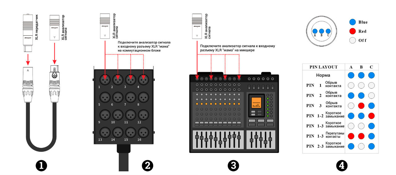 Тестер для кабеля с разъемами XLR