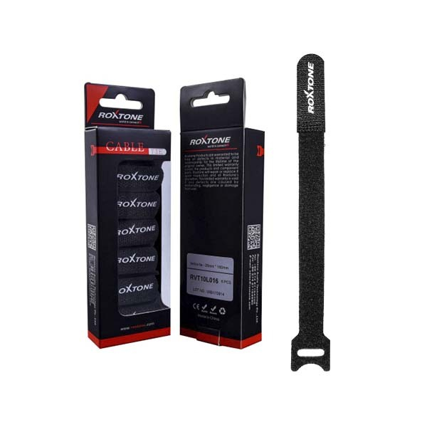 Набор из 5 стяжек для кабеля в коробке, в виде текстильное ленты "липучки". Длина 30 см. Цвет: черный.