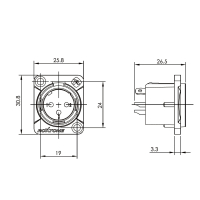 Разъем Cannon (XLR) панельный папа 3-х контактный, цвет: серебро.