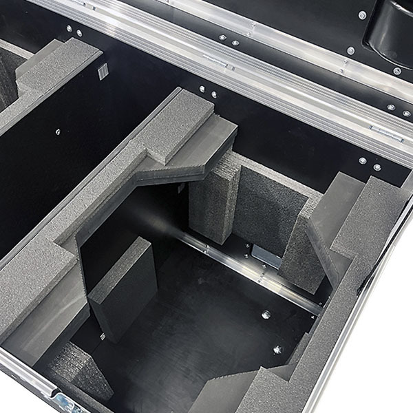 Транспортный кофр под 2-а прибора SS9681XLEM, дополнительный отсек, чаши под колеса, крышка откидная со смещенной осью вращения, гравировка на стенках, на колесах ф100мм (2-а колеса с тормозом). Кейс спроектирован по заданию проката.
