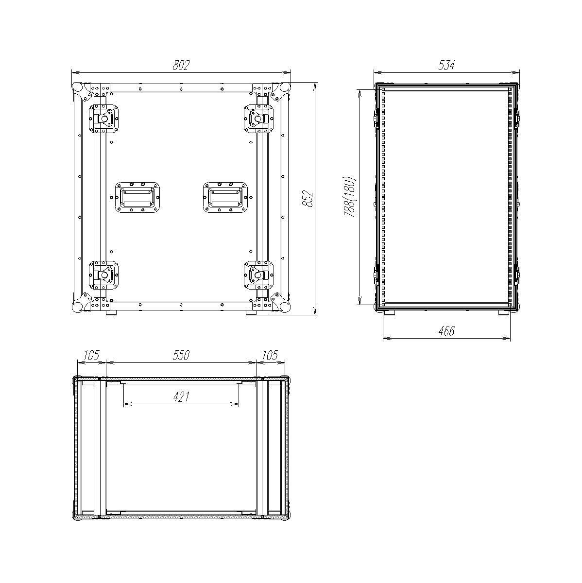 Высота 18U, глубина 550 мм