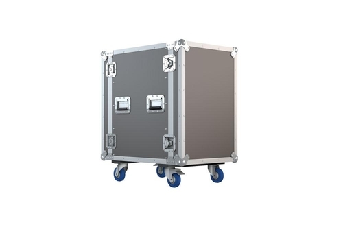 Рэковый кейс 16U, глубина 550мм, DIN рейка с 2-х сторон, ламинированная фанера 9мм, с колесами d100мм, 2-а колеса с тормозом.