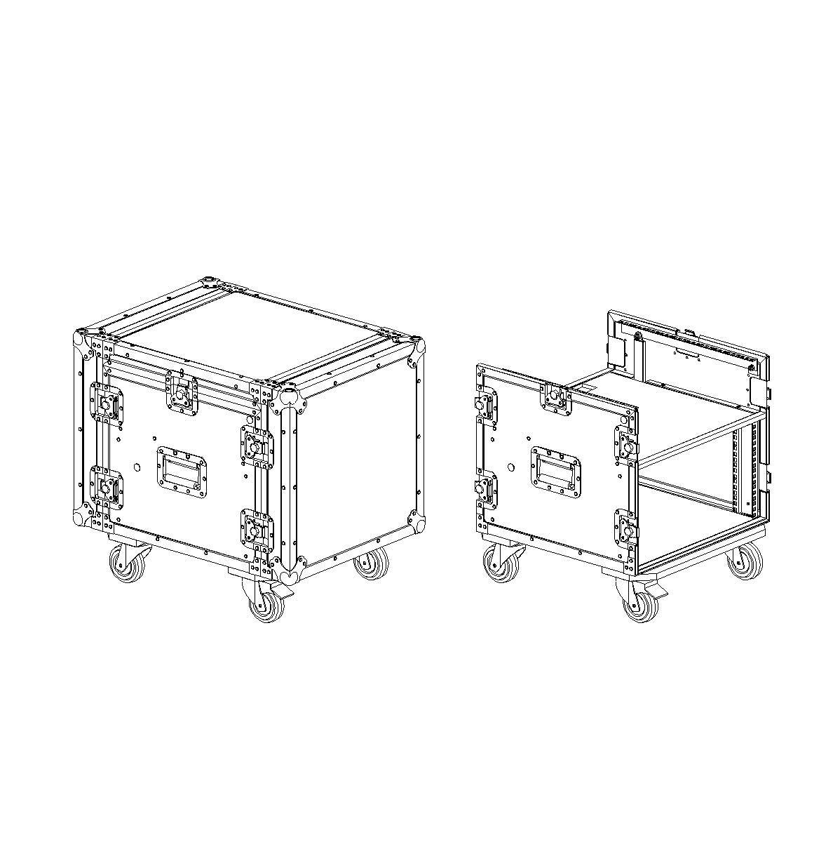 Рэковый кейс 6U с верхней консолью 10U, глубина 480мм, DIN рейка с 2-х сторон, ламинированная фанера 9мм, с колесами d100мм, 2-а колеса с тормозом.