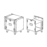 Рэковый кейс 8U с верхней консолью 10U, глубина 480мм, DIN рейка с 2-х сторон, ламинированная фанера 9мм, с колесами d100мм, 2-а колеса с тормозом.