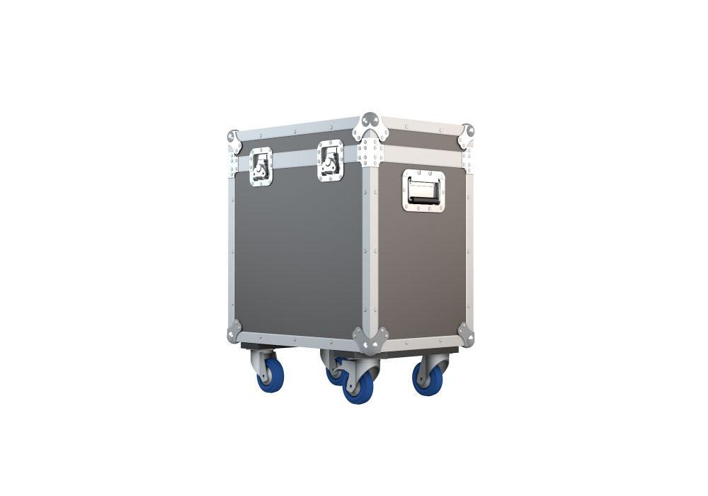 Транспортный кейс внутренний размер 576 х 370 х 580 мм, ламинированная фанера 9 мм, с колесами d100 мм, 2 колеса с тормозом, съемная крышка.