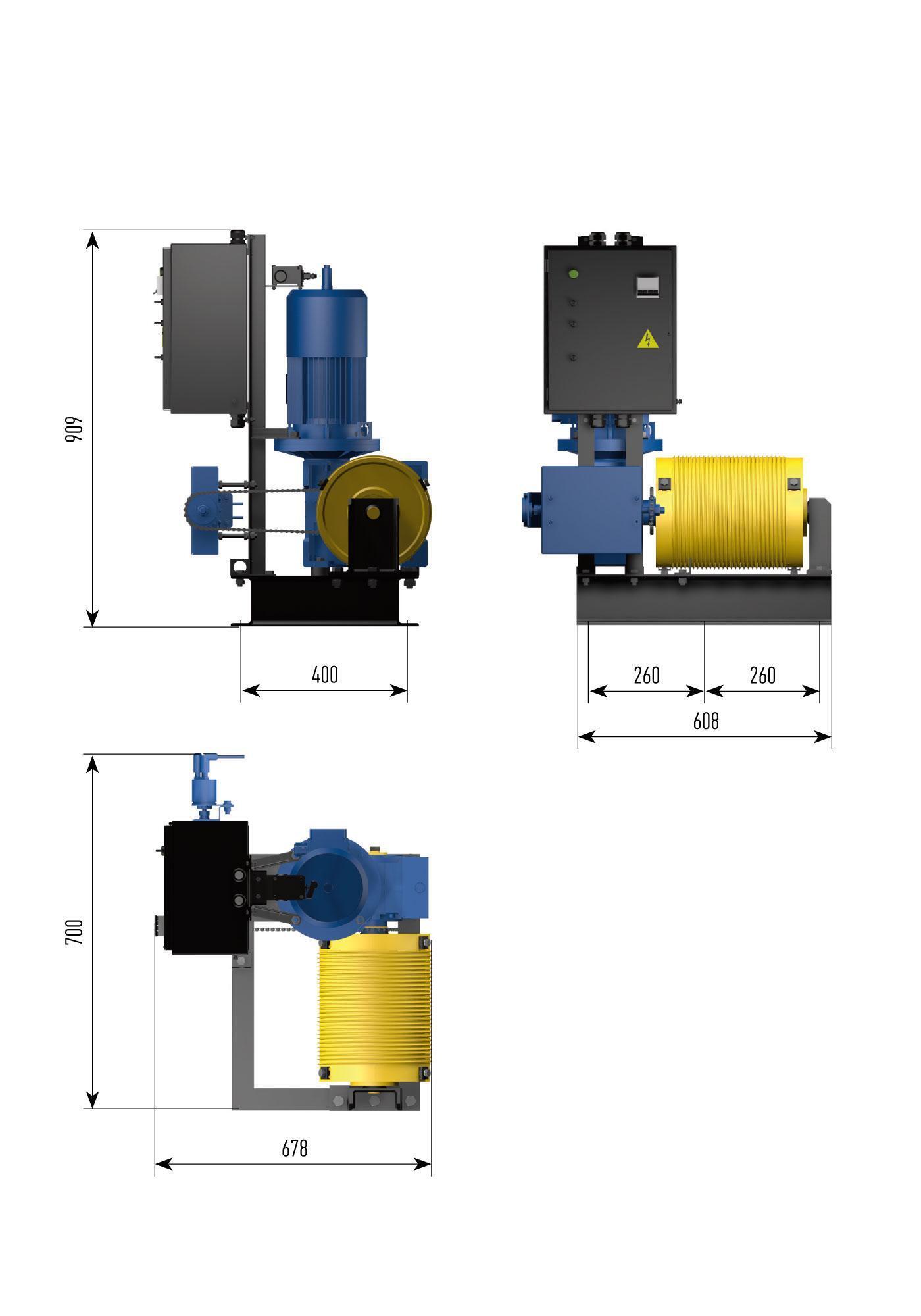 | Наименование | Максимальное тяговое усилие, кг | Количество секций на барабане | Канатоемкость, м | Диаметр каната, мм | Скорость намотки каната на барабан, м/с | Мощность электропривода, кВт | Масса лебедки со шкафом управления, кг |