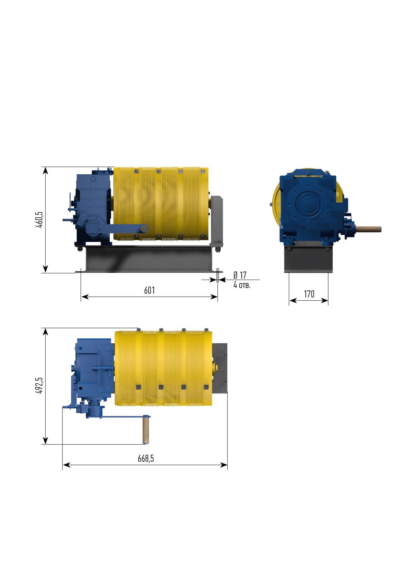 | Наименование | Максимальное тяговое усилие, кг | Количество секций на барабане | Канатоемкость, м | Диаметр каната, мм | Скорость намотки каната на барабан, м/с | Мощность электропривода, кВт | Масса лебедки со шкафом управления, кг |
