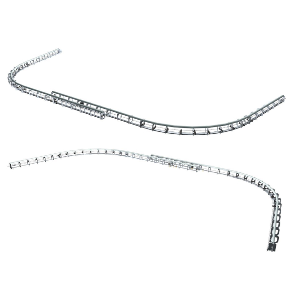 Механизм радиальной дороги состоит из отдельных элементов – прямых и радиусных. В комплектацию радиальной дороги добавляются опорные ролики, чтобы трос как можно более точно повторял изгиб дороги. Подшипник опорного ролика — шарикоподшипник.