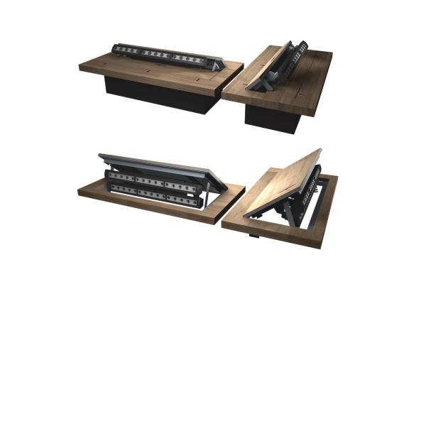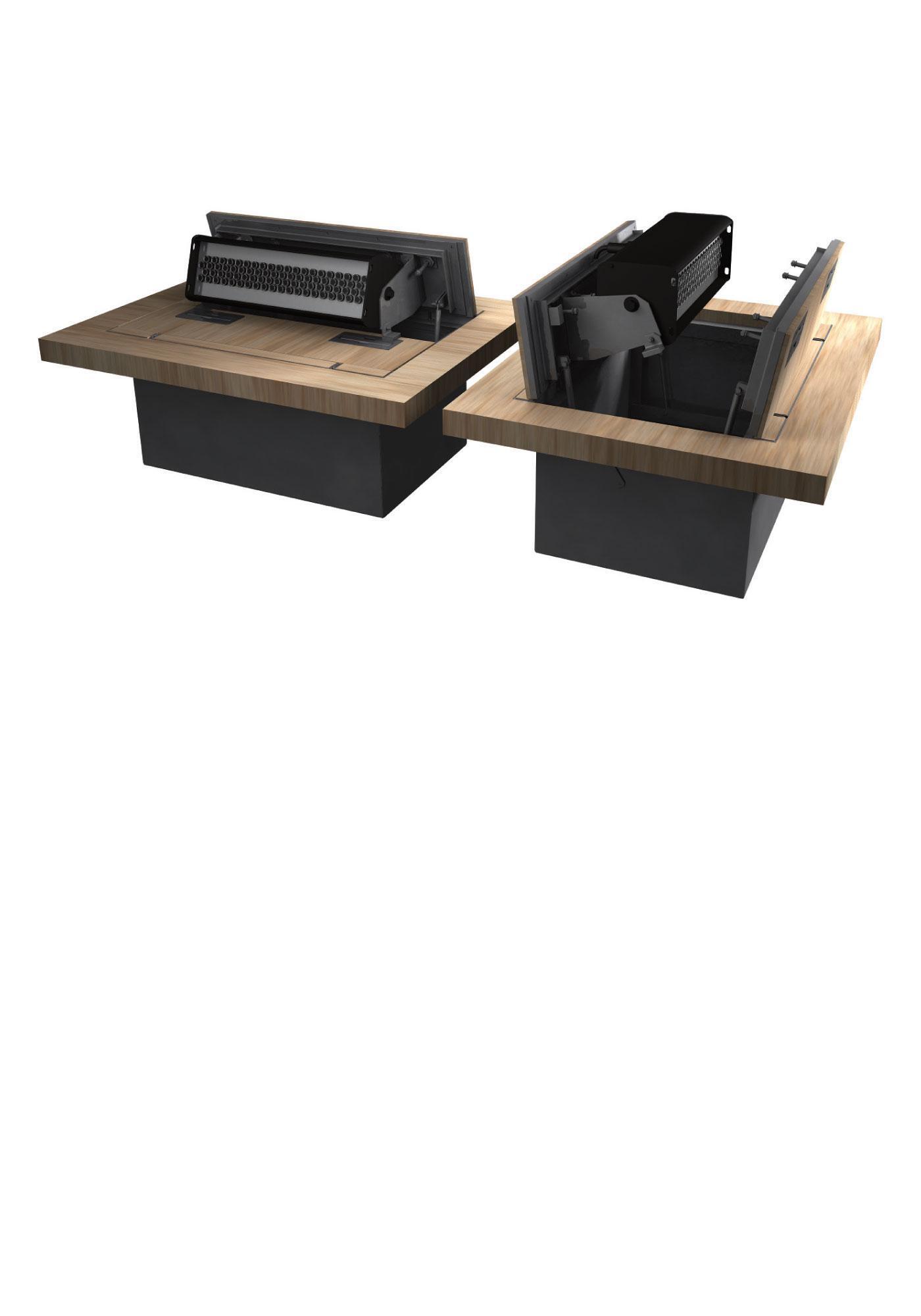 Ручки рампы, предназначенные для откидывания крышки, в нерабочем положении утапливаются ниже уровня планшета сцены. Механизм рампы имеет блокировку питания приборов, которая при достижении крышки рампы крайнего нерабочего положения автоматически отключает питание. Рампа имеет простую и эргономичную конструкцию, и ее эксплуатация не требует квалифицированного технического обслуживания.