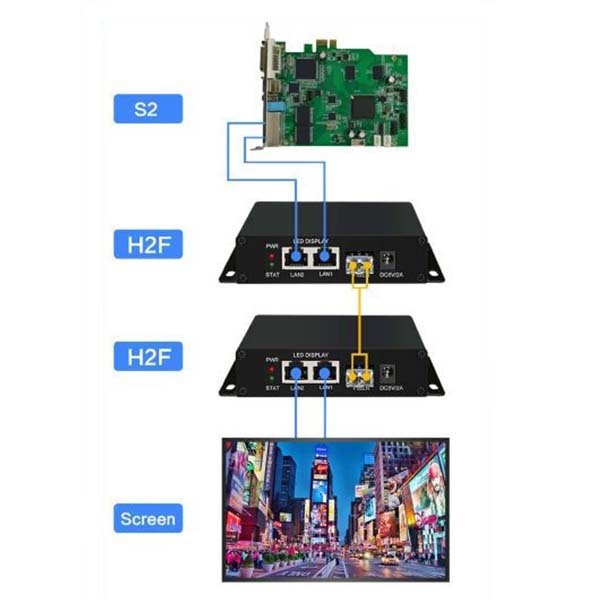 H2F - Волоконно-оптический трансивер, предназначен для передачи сигнала цветности LED экрана на дальние дистанции.