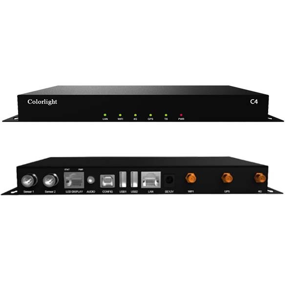 C4 принадлежит новому поколению асинхронных контроллеров для LED экранов. Этот сетевой проигрыватель дает возможность управлять экранами дистанционно без компьютера за счет подключения к "Облачной" системе с помощью 3G/4G, WIFI или LAN/ WAN кабелей.