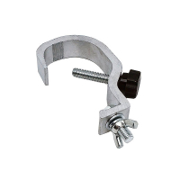 Алюминиевая струбцина крюк шириной 25 мм с винтовым фиксатором для трубы d35–61 мм. Допустимая нагрузка 70 кг.