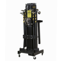 Универсальный элеватор фронтальной загрузки для линейных массивов, светодиодных экранов и ферм, с четырьмя секциями и возмодностью блокировать на разной высоте, с индикатором уровня горизонтального положения, с транспортировочными колесами.