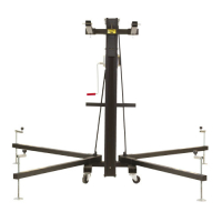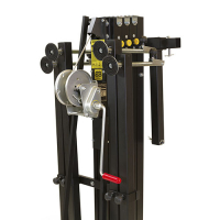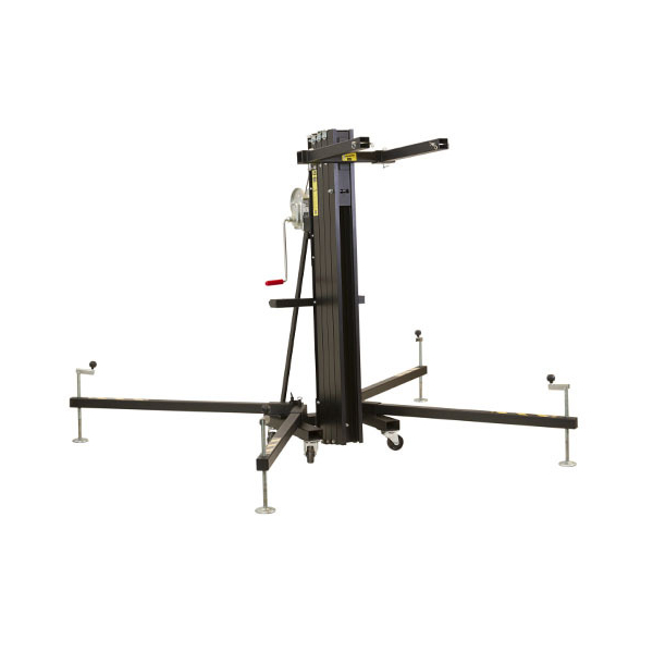 Универсальный элеватор фронтальной загрузки для линейных массивов, светодиодных экранов и ферм, с четырьмя секциями и возможностью блокировать на разной высоте, с индикатором уровня горизонтального положения, с транспортировочными колесами.