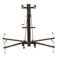 Универсальный элеватор фронтальной загрузки для линейных массивов, светодиодных экранов и ферм, с четырьмя секциями и возможностью блокировать на разной высоте, с индикатором уровня горизонтального положения, с транспортировочными колесами.
