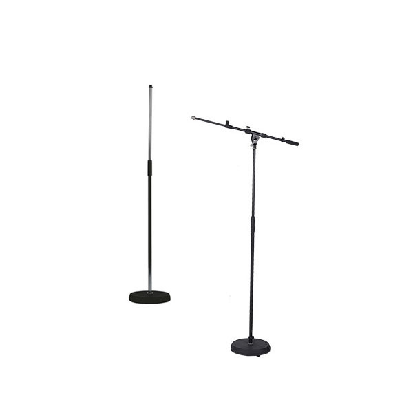 Прямая микрофонная стойка с телескопической "стрелой" с чугунным основанием и резиновым антивибрационным кольцом (в коробке 6 шт.)