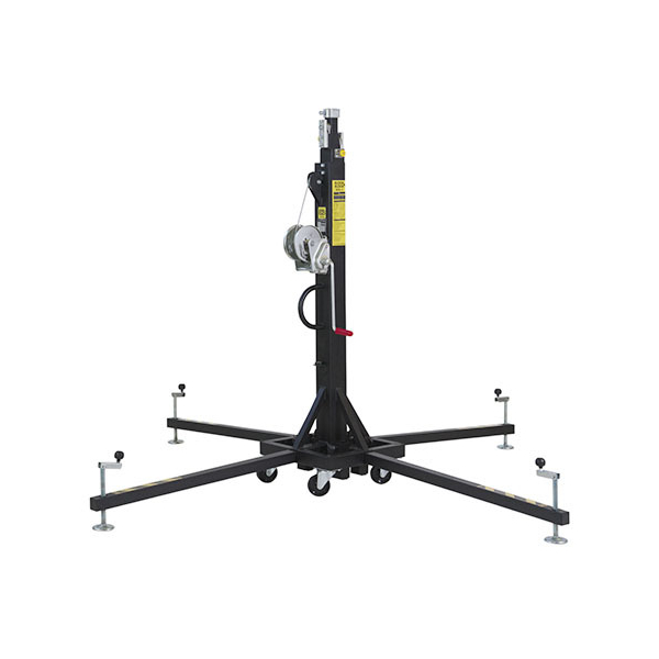 Телескопическая универсальная стойка-элеватор с четырьмя секциями, c возможностью блокировать их на разной высоте, с индикатором уровня горизонтального положения.