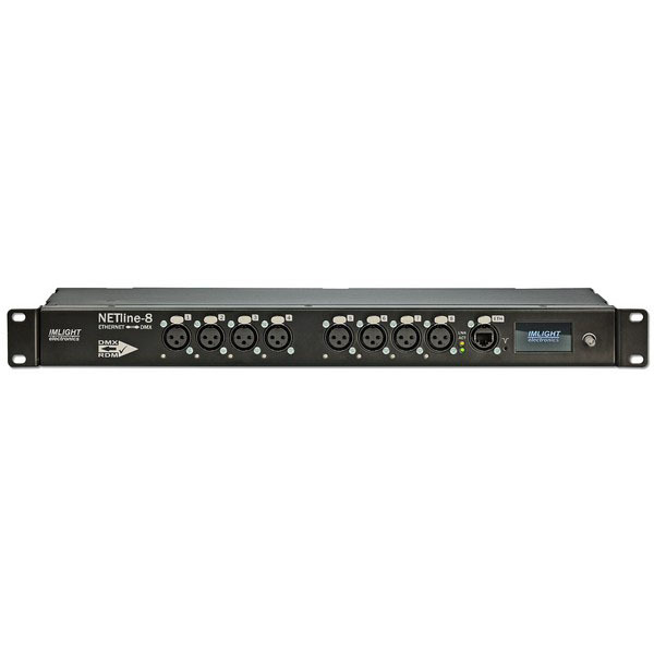 Преобразователь сигнала двунаправленный, протоколы: ArtNet, sACN, DMX512, RDM, RDMNet ready; гибкая маршрутизация сигналов, настройка приоритетов управления, резервирование сигнала DMX (функция FALLBACK); 8 DMX-портов, разъемы XLR 5pin, 1 Ethernet-порт, разъем EtherCON, полноцветный IPS дисплей, энкодер управления, исполнение корпуса рэковое 1U.