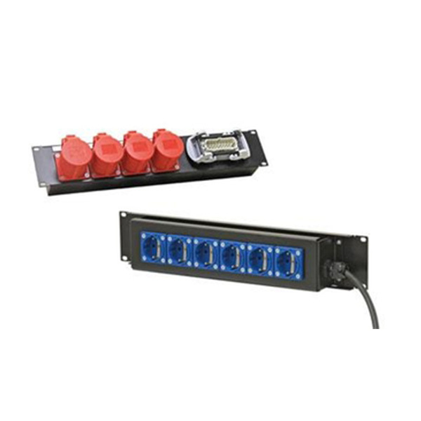 Блок, 6 розеток SCHUKO, соединенных параллельно, розетки с тыльной стороны, кабель H07RN-F 3G1,5 с вилкой CEE 3п16А, высота 2U, монтаж в рэк
