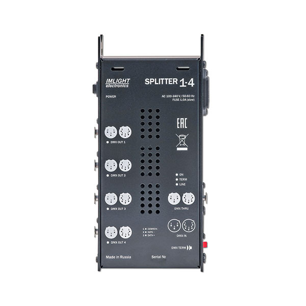 Блок разветвления/усиления сигнала DMX-512, 1 вход, 1 сквозной, 4 выхода, разъемы XLR 5pin, исполнение корпуса мобильное/настенное