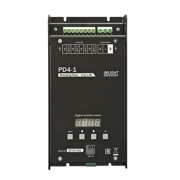 Диммерный блок. 4 канала по 1кВт, сигнал управления – DMX-512-A, монтаж на стену