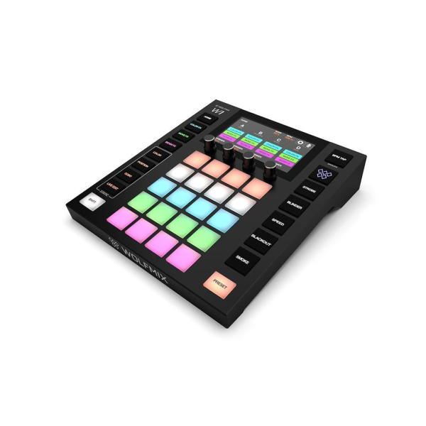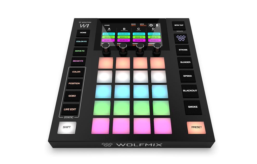 Wolfmix W1 представляет собой компактную DMX-консоль с 37 силиконовыми тач-пэдами, 4 энкодерами и цветным 4,3” сенсорным экраном. В памяти устройства изначально содержится библиотека с более чем 3 000 сценическими приборами, которую можно обновлять и изменять с помощью программного обеспечения WTOOLS (PC/Mac).