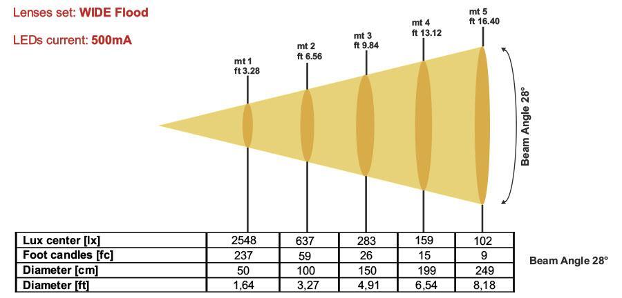 FOCUS оснащён 3 Full Color (RGBW) LED выдающим 3752 Люкса на 1 метре при угле раскрытия в 22 градуса.