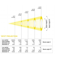 Beam (1,7°) – прибор генерирует экстремально высокий световой поток (110.000 Lux / 5 m) при раскрытии луча 1,7° и может светить концентрированным пучком на большие расстояния.